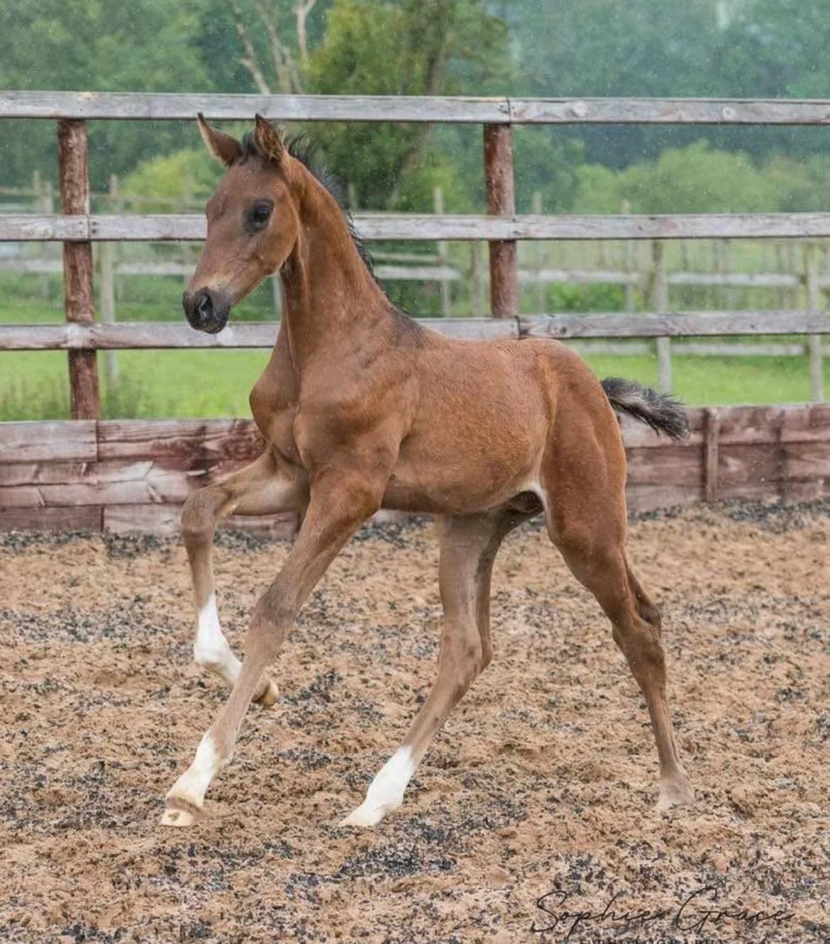 She is out of our star mare, Mafalda who has already produced a Vice Bundeschampion (Marbella OLD) and a finalist at this year’s Oldenburg licensing. Mafalda’s full sister, Mocca, produced the vice Champion at the Westphalian licensing, Apalachee, who sold to Gestut Binhomme for over 400K. Elena is a big moving, charismatic filly eith lots of star ⭐️ appeal. One for the higher levels -