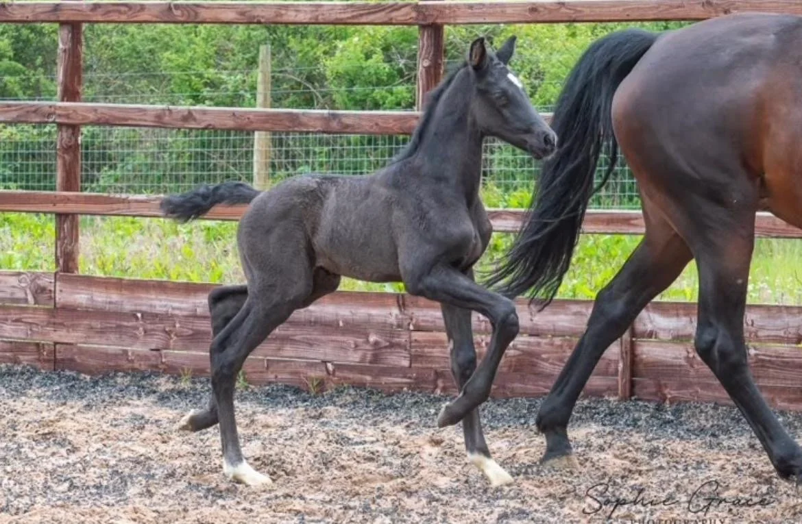 A fabulous, black colt out of the full sister to WCYH, Lordswood Dancing Diamond. He is a full sibling to last year’s superstar filly, Kilan Extreme Desire who sold to US junior rider, Allison Nemeth -