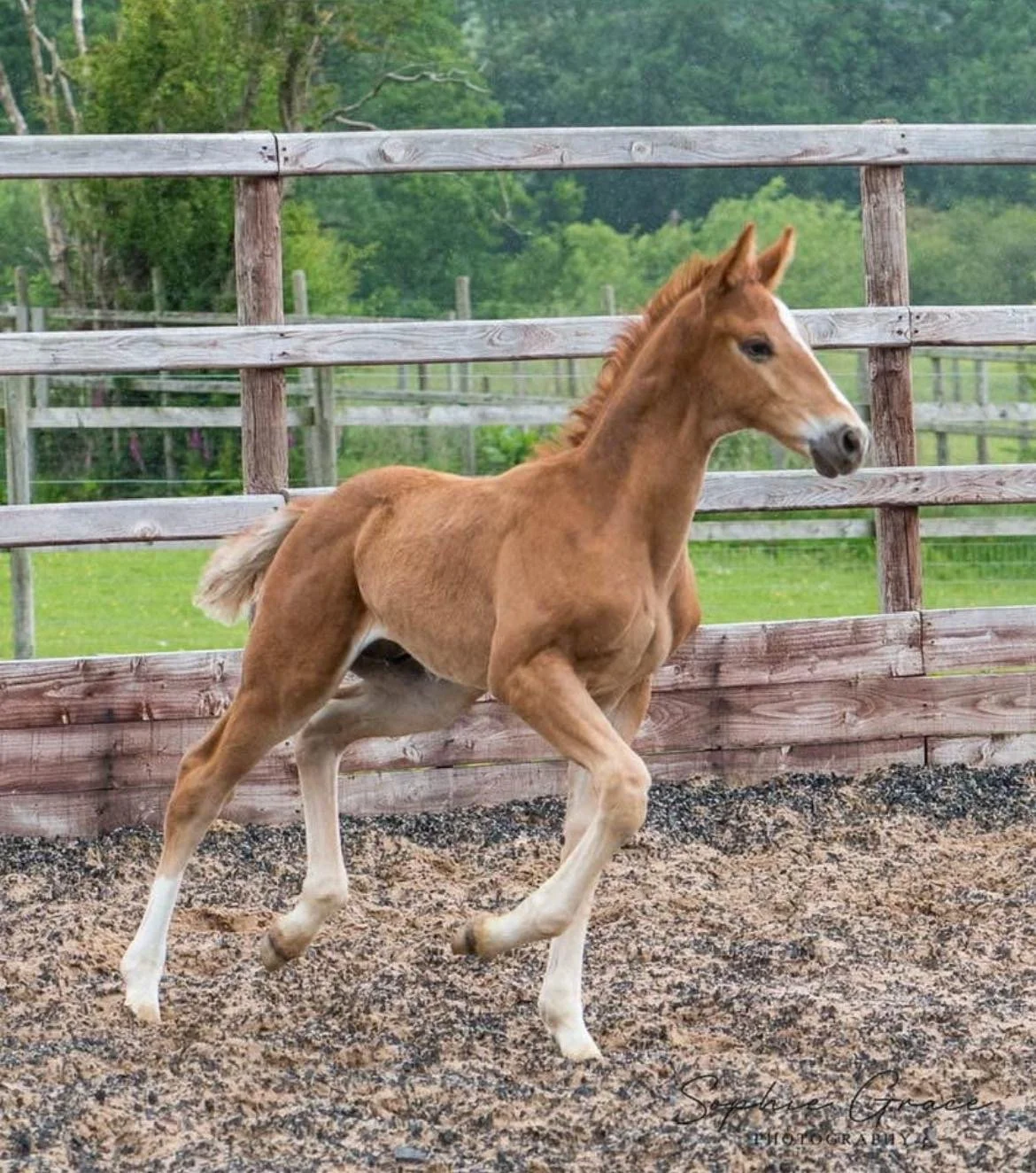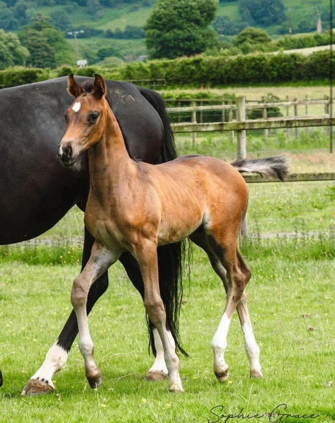 A stunning daughter of the young Escamillo son, Escaneno. A very modern, elegant filly with a beautiful neckline. The dam’s siblings are successful in young horse classes in Germany and the UK -